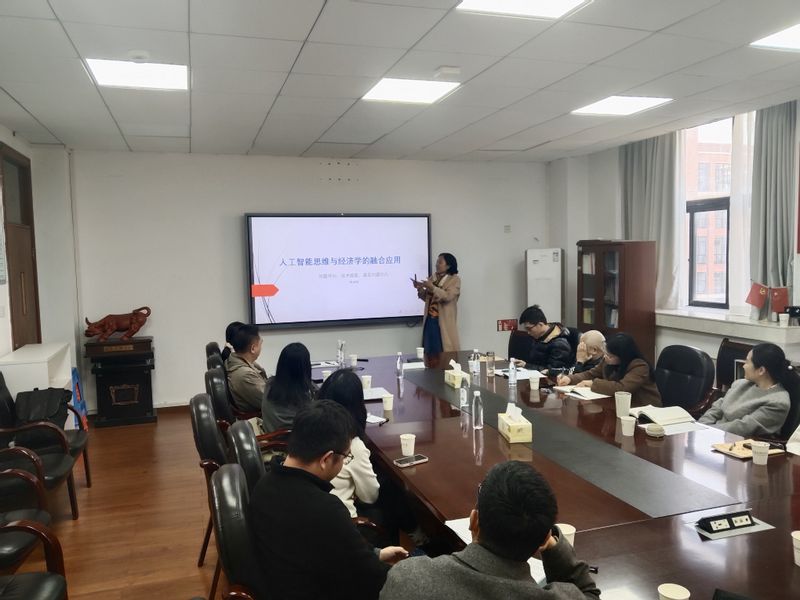 在随后举行的教师座谈会上,聚焦“人工智能赋能教改与教研”主题,与会教师结合教学实践,围绕“AI赋能金融学教学建设”、“人工智能思维与经济学的融合”、“AI工具与专业课程适配性”和“技术应用与理论教学的平衡”等议题展开深入讨论,现场交流热烈、互学共进。申琳副院长在交流中强调,学院支持教师以专业课程为平台,积极拓展AI应用场景,同时注重强化学生的数学与统计基础,使技术切实服务于知识理解与能力提升。